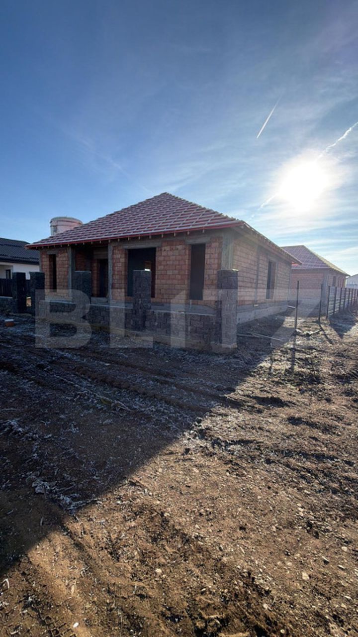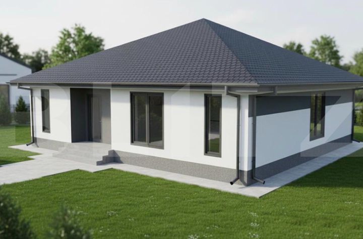 Casa pe parter, spatioasa, aerisita, cu camere mari, compusa din 3 dormitoare, living+bucatarie, 2 bai, incalzire in pardoseala.