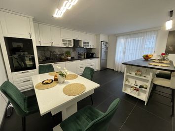 Tamplaria Rehau cu geamuri termopan si usa Rehau ofera izolatie foarte buna. Casa se preda mobilata si utilata, fiind retrase doar obiectele personale.