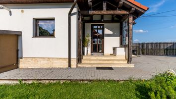 Anexă recondiționată (fosta șură): zonă de zi, cămară și spațiu de parcare pentru 3 mașini.