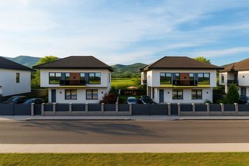 Casă individuală în ansamblu de 4 locuințe situate în Valu lui Traian, str. Complexului, exact in centru pe partea dreapta.