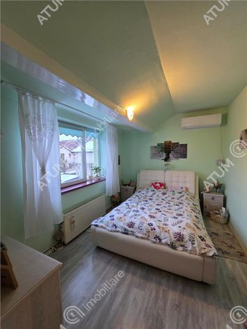 Imobilul este distribuit pe nivel de inaltime S+P+M, fiind compus la parter din: hol de aproximativ 9 mp, bucatarie 11 mp, living 22 mp, dormitor 19 mp, baie 4 mp dotata cu geam de aerisire, la etaj regasim un hol de 5 mp, doua dormitoare de aproximativ 10 mp, o a doua bucatarie de 8 mp, zona de luat masa 7 mp, o debara de 2.5 mp, si o baie de serviciu de 1.5 mp cu geam de aerisire.