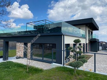 Predarea acestei case se face la cheie atat exterior cat si interior folosindu-se materiale de cea mai inalta calitate, cu tamplarie PVC, usa de intrare din PVC, racorduri facute la apa-canal, electricitate si gaze, incalzire in pardoseala pe fiecare nivel cu termostat separat pe fiecare incapere, usi de interior marca Portadoors, gresie, faianta, parchet dar si o piscina interioara pregatita pentru noii proprietari.