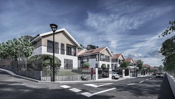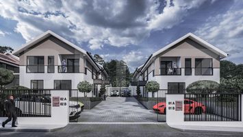 Proiectul ansamblului este conceput pentru case cuplate cu cate doua unitati locative.