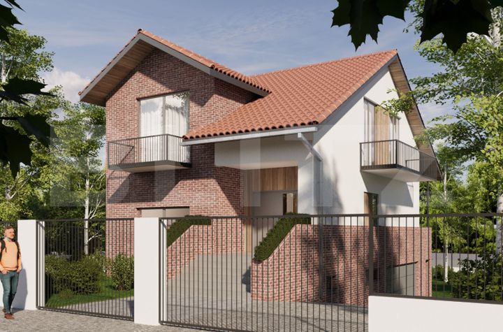 Casa este constructie 2025, cu fundatii din beton si zidarie din caramida, si ofera o compartimentare excepționala pentru o familie:
