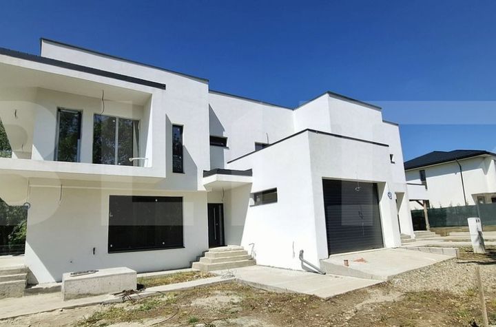 Cele două vile alipite nu sunt identice – diferă complet ca formă, dimensiune și orientare, ceea ce conferă proprietății caracter de vilă individuală, nu de duplex clasic.