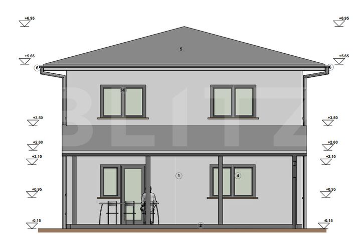 -Parter: living spațios, bucătărie cu zonă de luat masa, baie, cameră (ideală ca birou sau dormitor de oaspeți), spațiu tehnic și terasă