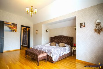 Accesul intre demisol si mansarda se face pe o scara ampla si eleganta, imbracata in detalii de fier forjat si iluminata de un candelabru din cristal.