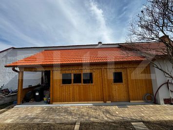 Proprietatea dispune de o anexă pentru atelier sau depozitare, două terase, o curte frumos amenajată și pavata, cu pomi fructiferi și o fântână.