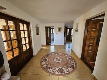 - 3 dormitoare luminoase, baie, hol spațios care poate fi amenajat ca zonă de relaxare sau birou, 2 terase cu priveliște frumoasă asupra grădinii și împrejurimilor.