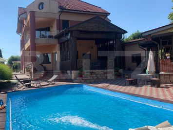 Curtea este imprejmuita cu gard zidit si amenajata cu pavele, gazon, pomi decorativi, pomi fructiferi, flori. Totodata dispune de o bucatarie de vara, piscina, zona de gratar, doua terase, camera tehnica si camera de depozitare. Proprietatea dispune de toate utlitatile si este incalzita prin intermediul unei centrale pe gaz. Pentru mai multe detalii nu ezitati sa ne contactati!