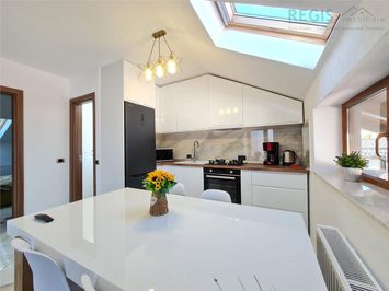 Vila este impartita in doua apartamente de trei camere la parter si etaj , ambele apartamente dispun de o terasa spatioasa.