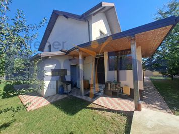 - Curte amenajata cu pavele si gazon si imprejmuita cu gard de lemn masiv