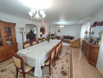 La subsol, veți găsi un beci mare, ideal pentru depozitare sau pentru amenajarea unui spațiu de vinuri, alături de o cameră tehnică utilă. Parterul casei vă întâmpină cu un hol generos care vă conduce către un living luminos, perfect pentru relaxare și socializare.