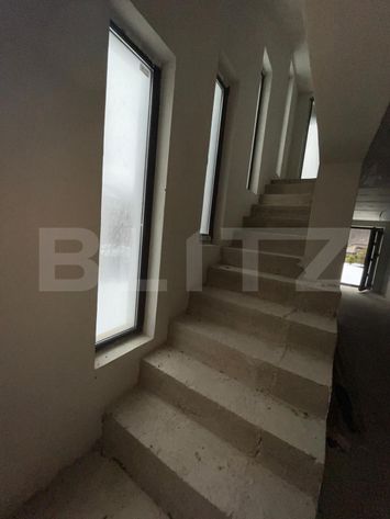 Construcția este realizată din BCA, cu fundație solidă din beton, acoperiș din tablă Lindab, beneficiind de izolație exterioară de 10 cm, tâmplărie termopan și vopsea decorativă la exterior. Imobilul este la stadiul de gri, oferind viitorului proprietar libertatea de a-și amenaja casa exact după propriul gust.