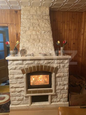 - Living confortabil cu șemineu pe lemn