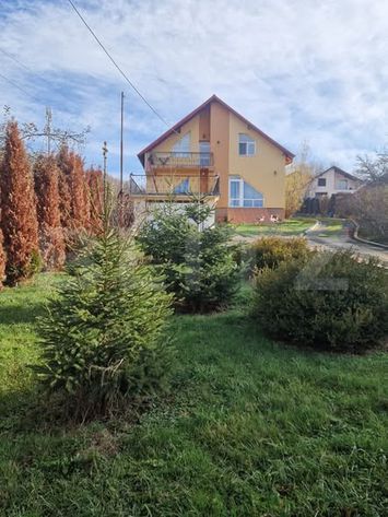 În spatele casei se află un foișor elegant cu grătar, ideal pentru mese în aer liber, precum și o livadă frumoasă cu pomi fructiferi, care completează farmecul proprietății. Întregul teren este amenajat cu gust, oferind o combinație plăcută de natură și confort modern.