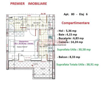 STU - SUPRAFAȚA TOTALĂ UTILĂ: 38.91 mp,SUPRAFAȚĂ TERASE/BALCOANE: 8.33 mp