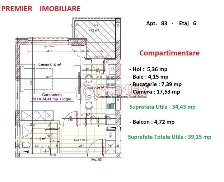 - SUPRAFATA TOTALA UTILA - 39,15 mp