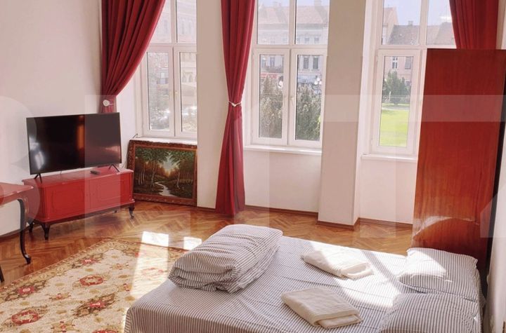 Vă oferim spre închiriere un apartament deosebit, situat chiar în inima orașului (zona ultra-centrală), ideal pentru cei care își doresc confortul unei locuințe moderne într-o clădire cu farmec și caracter.