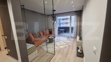 Este complet mobilată cu mobilier de foarte bună calitate și dotată cu electrocasnice moderne, inclusiv mașină de spălat vase. Un mare avantaj îl reprezintă cele două dressinguri foarte spațioase, care asigură ample spații de depozitare. Balconul este decomandat, însorit și ideal pentru relaxare. Proprietatea dispune de loc de parcare, inclus în preț; opțional, se poate renunța la parcare, caz în care chiria va fi de 450 euro.