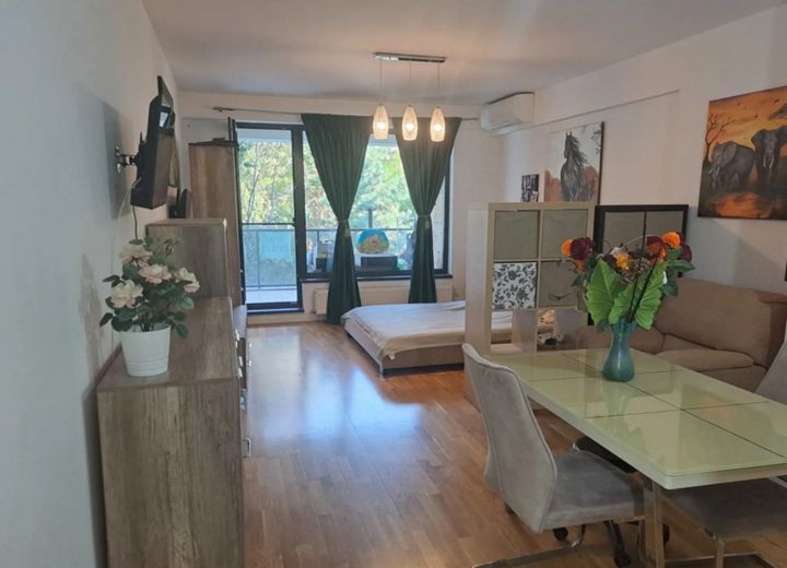 Studio situat în zona Iancu Nicolae, în complexul rezidențial Residence 5, amplasat între Grădina Zoologică Băneasa și Jolie Ville, la aproximativ 200 m de Pădurea Băneasa. Proprietatea se află într-un ansamblu rezidențial modern, cu pază permanentă și supraveghere video.