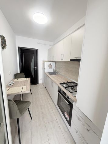 Mobilat: mobilat, Stil mobilier: clasic, Stare mobilier: buna, Stare interior: renovat, Bucatarie: mobilata, Echipata, Frigider, Plita gaz, Cuptor electric, Hota, Inchisa, Compartimentare: decomandat, Proprietarul plateste: apa, Alte mentiuni: nu accepta animare de companie, Vechime imobil: nou, Stadiu constructie: finalizat, Stare imobil: buna, Tipuri de apartamente: garsoniere, Pereti exteriori: beton, Confort: i sporit, Structura: cadre, Vedere: vedere pe spate