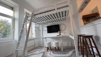 Structura apartamentului: Hol de acces Baie proprie cu dus si masina de spalat Bucatatie deschisa complet utilata 1 camera tip studio/ dormitor, cu canapea, TV si pat supraetajat