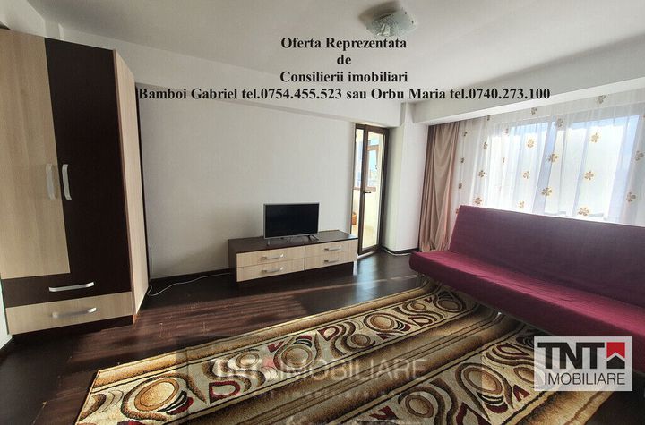 Apartamentul de inchiriat este semidecomandat alcatuit din 1 camera 1 baie, bucatarie, balcon.