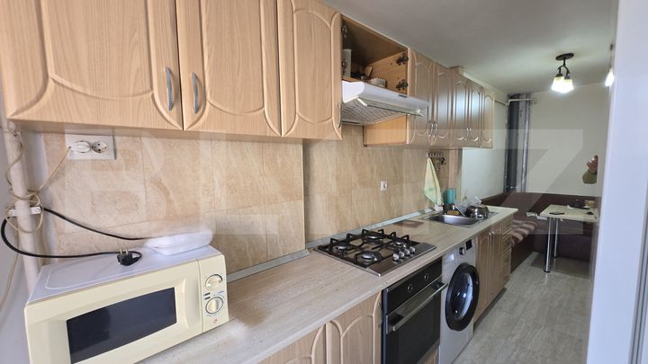 -Utilată complet: bucătărie cu electrocasnice (frigider, plită/hobă, cuptor/microunde), baie modernă, maşină de spălat, conexiuni pentru