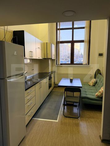 Blitz vă oferă o oportunitatea rară de a închiria un apartament cu adevărat deosebit! Punem la dispoziție un apartament cu 1 cameră, generos ca suprafață – 30 mp ingenios compartimentați pe două niveluri, rezultat al unui tavan înalt care conferă spațiului un aer exclusivist și elegant. Imobilul se află la parter, într-o zonă excelentă, și a fost amenajat modern, fiind folosit până de curând în regim AirBnb, aspect care confirmă atât funcționalitatea, cât și atractivitatea lui. Localizarea este pur și simplu ideală: