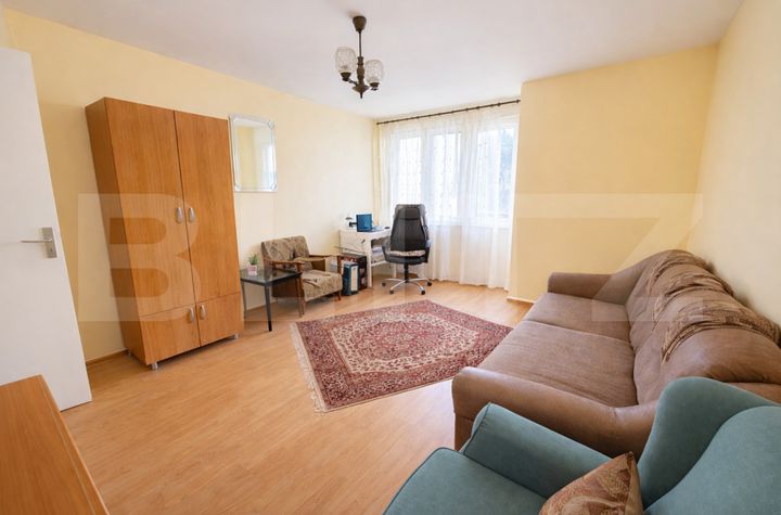 Blitz oferă spre închiriere garsonieră confortabilă, situată la parter, cu suprafață de 32 mp, într-o zonă liniștită, cu multe spații verzi, în apropiere de Baza Sportivă „La Terenuri”, pădure și zona McDonald’s.