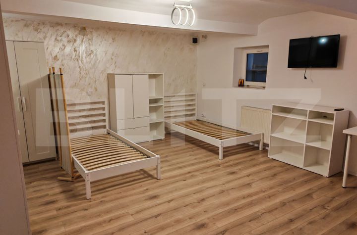 Compartimentarea este semidecomandată, fiind compusă din: hol, cameră spațioasă tip living/dormitor, bucătărie separată si baie.