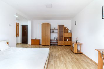 Apartamentul este decomandat si se compune dintr-un hol la intrare cu cuier si oglinda, apoi pe partea dreapta avem baia care este cu cada, in stanga holului gasim un dormitor spatios cu iesire pe balcon, si tot din hol se intra tot in fata in bucatarie, care este inchisa.