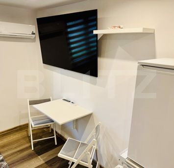 Garsoniera se închiriază complet mobilată și utilată, fiind pregătită pentru mutare imediată. Este dotată cu: mașină de spălat, frigider, televizor, cuptor cu microunde, plită electrică.