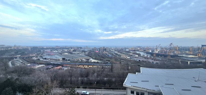 Garsonieră luminoasă cu vedere panoramică către mare și port, situată la etajul 9 într-un bloc solid construit după 1990.