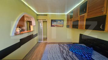 Garsoniera este complet mobilată și dispune de un geam la baie, un detaliu practic și rar întâlnit, ce asigură lumină naturală și aerisire eficientă. În acte figurează ca garsonieră, dar beneficiază și de un beci propriu, perfect pentru depozitarea lucrurilor. Instalatia electrică a fost recent schimbată, ceea ce reprezintă un avantaj important pentru viitorul proprietar. Încălzirea se face în prezent prin panouri radiante electrice, însă există deja gazul tras în locuință, astfel încât se poate monta centrală proprie pentru un plus de confort.