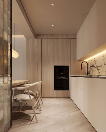 Parchet de inalta calitate in camere, iar in bai si bucatarii, gresie si faianta de import premium, rezistente la umezeala si uzura.