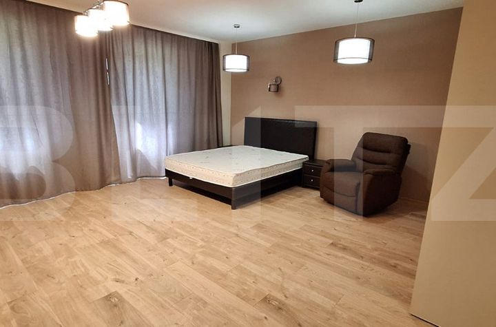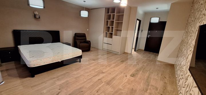 Studio-ul dispune de un open-space luminos și aerisit, care îmbină armonios zona de zi cu cea de dormit. Designul modern și funcțional al acestui spațiu vă permite să vă organizați activitățile zilnice într-un mod confortabil și plăcut.
