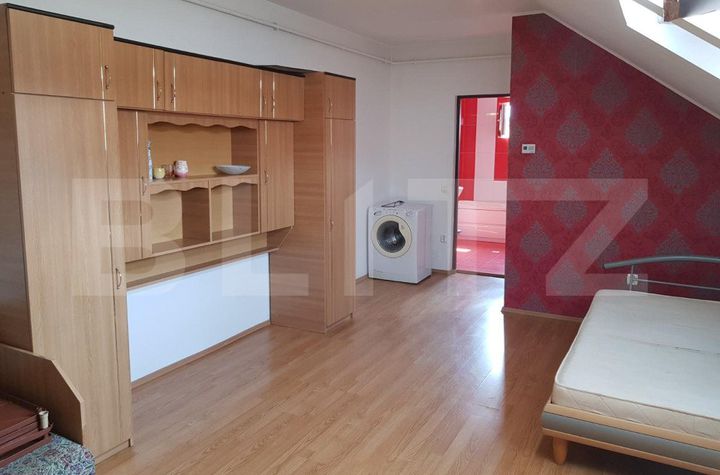 Este situat la mansarda unui bloc cu 4 etaje , se inchiriaza utilat si mobilat.