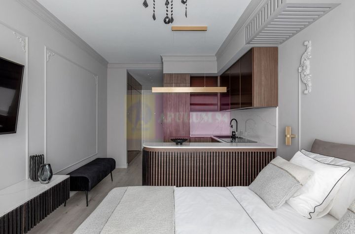 Studioul este situat la parterul inalt al unei cladiri din Win, avand vederea spre curtea interioara. Acesta a fost gandit ca o camera de hotel de 5 stele, fiecare detaliu fiind atent ales pentru a oferi confort. Toate materialele folosite, precum si electrocasnicele si obiectele de decor sunt premium.