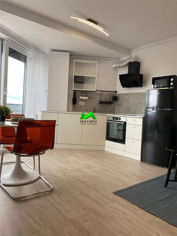 Studioul este compus dintr-un dormitor open space cu bucatarie, baie  si o terasa. Acesta beneficiaza de centrala proprie, aer conditionat, loc de parcare, prima inchiriere.
