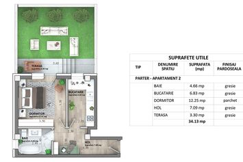 Suprafața utilă 34 mp