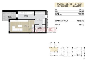 Compartimentare: living 18,6 mp, bucatarie inchisa 8,5 mp, baie 4,9 mp, hol 8,7 mp, balcon 5,5 mp.
