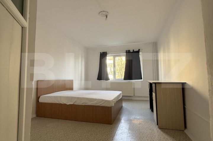 Compartimentare: Garsoniera este dotată cu bucătărie comună, ideală pentru socializare și economisire de spațiu, iar baia proprie garantează intimitatea locatarilor.