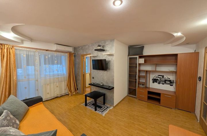 Mobilat: mobilat, Stare interior: curat, Bucatarie: frigider, Hota, Inchisa, Compartimentare: decomandat, Usi interior: lemn masiv, Pvc, Proprietarul plateste: telefon, Cablu tv, Stadiu constructie: finalizat, Structura: beton, Confort: i, Strazi limitrofe: asfaltate, Orientari: nord - vest
