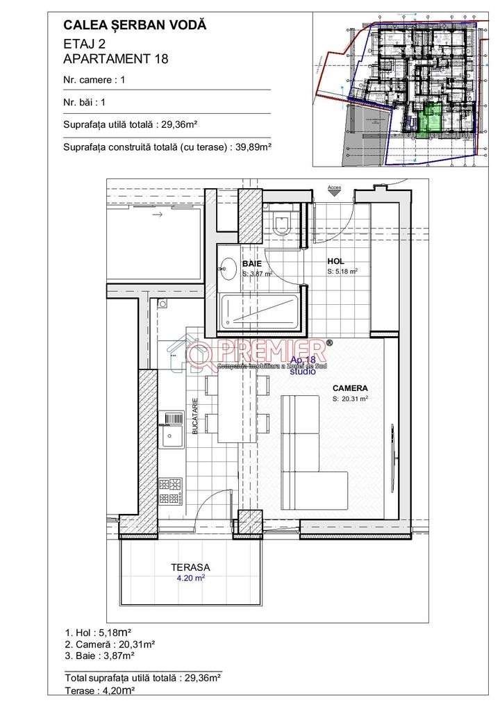 STU - SUPRAFAȚA TOTALĂ UTILĂ: 33 mp,SUPRAFAȚĂ TERASE/BALCOANE: 4.2 mp