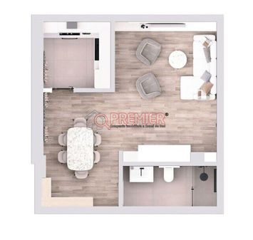 Spatiul interior este gandit eficient, cu o zona de living luminoasa, bucatarie open-space si loc de dining, plus un hol care ofera intimitate si separare functionala. Baia este elegant amenajata, cu materiale moderne si dotari premium. Ferestrele mari permit patrunderea luminii naturale pe tot parcursul zilei, oferind o atmosfera aerisita si relaxanta.