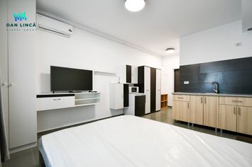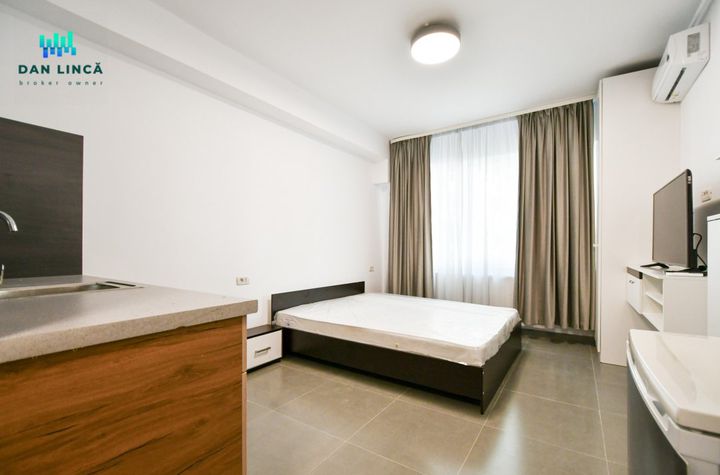 Garsoniera se preda mobilata conform fotografii si dispune de urmatoarele dotari si finisaje: TV LCD Samsung, minifrigider, cuptor cu microunde, plita vitroceramica, hota, masina de spalat rufe, aparat de aer conditionat 9000 BTU, instalatii electrice cupru asistate de tablou cu sigurante automate, prize si intrerupatoare modulare, instalatii internet si cablu TV prin fibra optica, instalatie gaze naturale, centrala termica Ferroli 24KW in condensare si calorifere otel, baia dotata cu dus, rigola scurgere si paravan sticla, vas WC, ventilaror aerisire, lavoar cu mobilier si oglinda, gresie si faianta portelanate, usa interior celulara, usa metalica la intrare, parchet laminat, tamplarie PVC Salamander, zugraveli lavabile (alb) si acces securizat cu interfon.