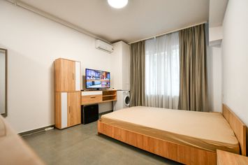 Garsoniera se preda mobilata conform fotografii si dispune de urmatoarele dotari si finisaje: TV LCD Samsung, minifrigider, cuptor cu microunde, aparat de aer conditionat 9000 BTU, instalatii electrice cupru asistate de tablou cu sigurante automate, prize si intrerupatoare modulare, instalatii internet si cablu TV prin fibra optica, instalatie gaze naturale, centrala termica Ferroli 24KW in condensare si calorifere otel, instalatii alimentare apa si instalatii termice PPR, baia dotata cu dus, rigola scurgere si paravan sticla, vas WC, ventilaror aerisire, lavoar cu mobilier si oglinda, gresie si faianta portelanate, usa interior celulara, usa metalica la intrare, parchet laminat, tamplarie PVC Salamander, zugraveli lavabile (alb) si acces securizat cu interfon.