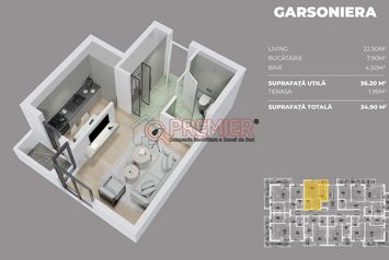 Va prezentam spre vanzare o garsoniera , in suprafata totala utila de 36.85 mp, incluzand un balcon de 1.95mp.